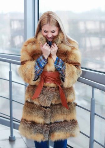 Also the key role in some models of such fur coats is played by decorative inserts made of leather, suede and other materials, which add originality to the product.