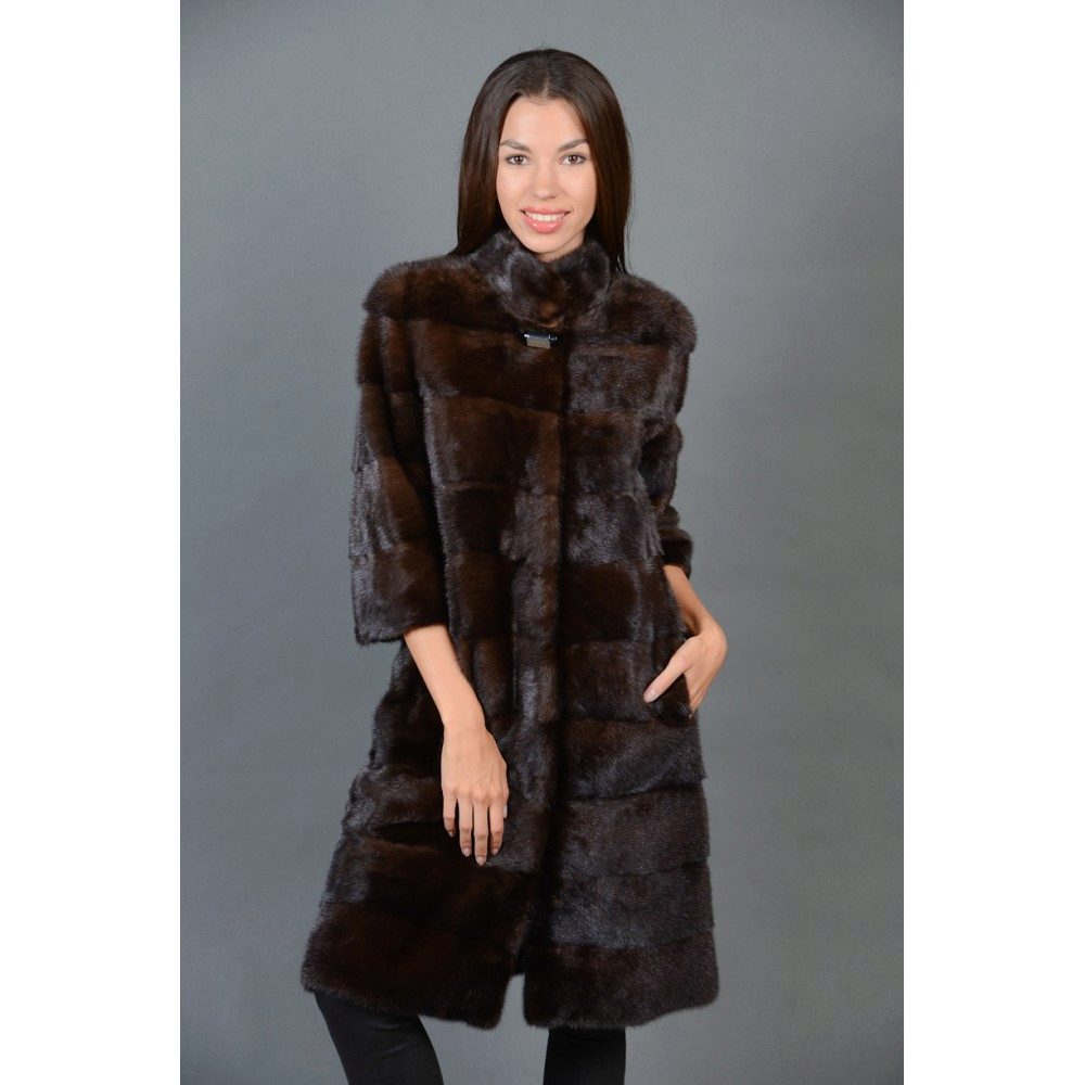 Fur skins with such a cut are laid out horizontally. In the case of a transformer, this allows you to make the joints and attachments of removable fur coat elements invisible to the eye, since they pass along the border of the fur plates.