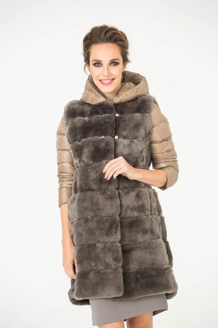 In some coats, it is possible to shorten the elements not by one “division”, but by several at once - for example, the sleeves can be three-quarters transformed into a piece by the elbow, but can be completely dismantled, transforming the fur coat into a fur vest.