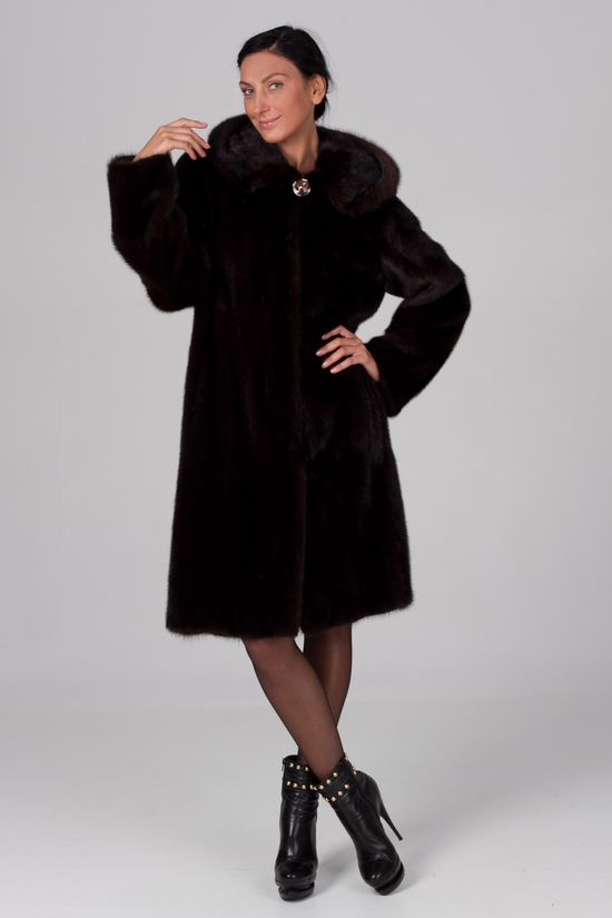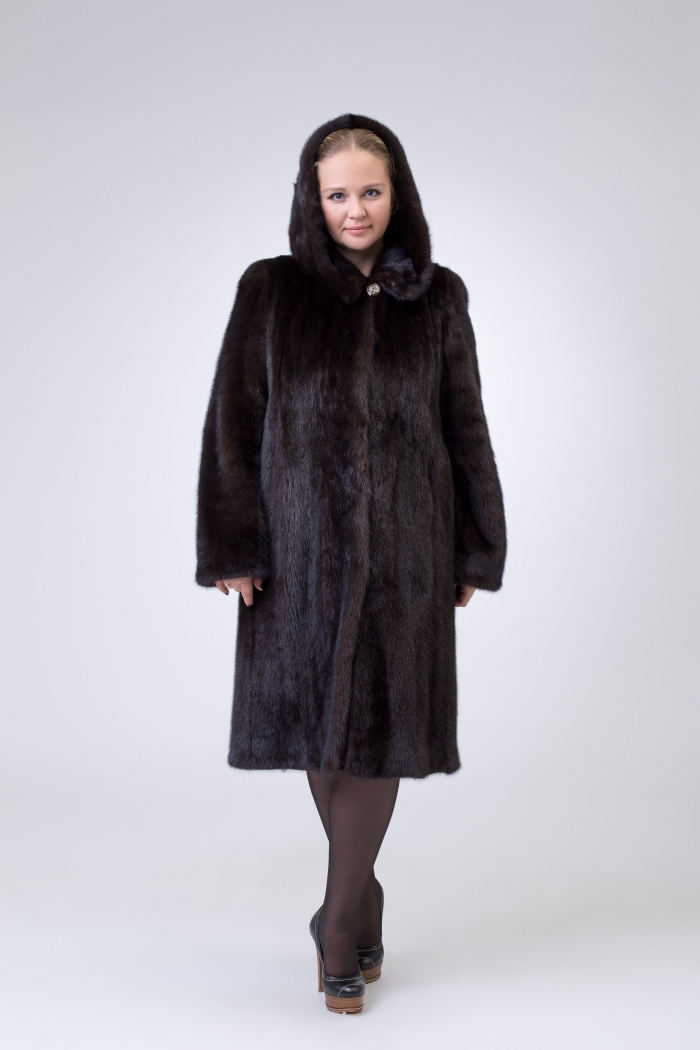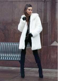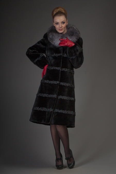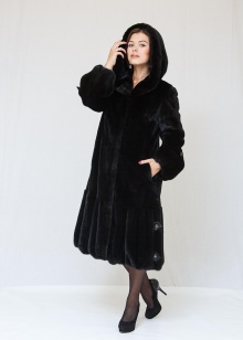 - The standard trapezium fur coat, knee-length or slightly lower, is the most popular and versatile model. They are equally well suited and slim, and girls with lush volumes. However, ladies with appetizing forms should prefer models without a hood, which makes the image more overweight.
