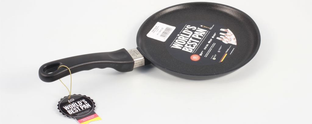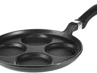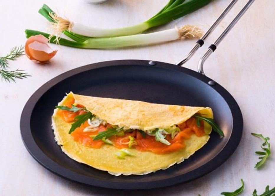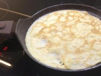 Pancake pans, designed for induction type plates, have several thin layers, which ensures uniform heating of pancakes, which are even and thin. Such a frying pan is perfect not only for making thin pancakes, but also for frying pancakes and eggs.