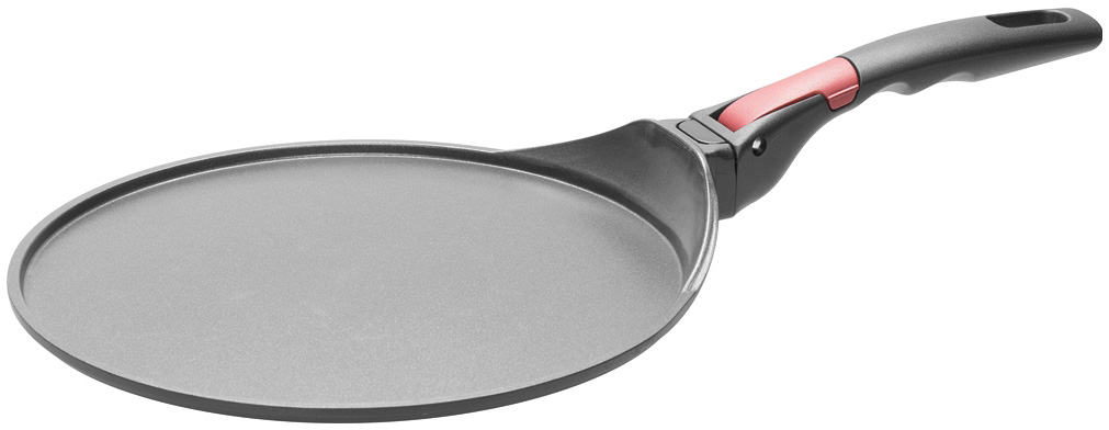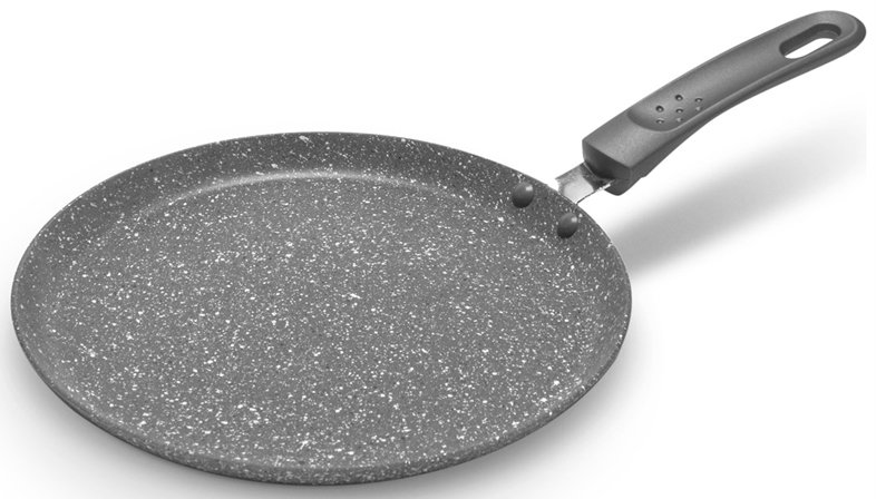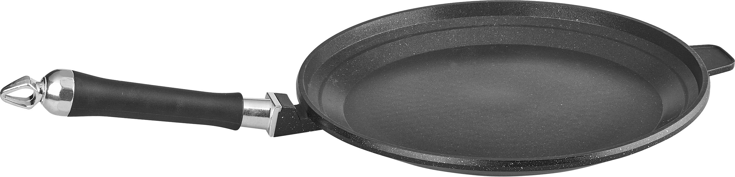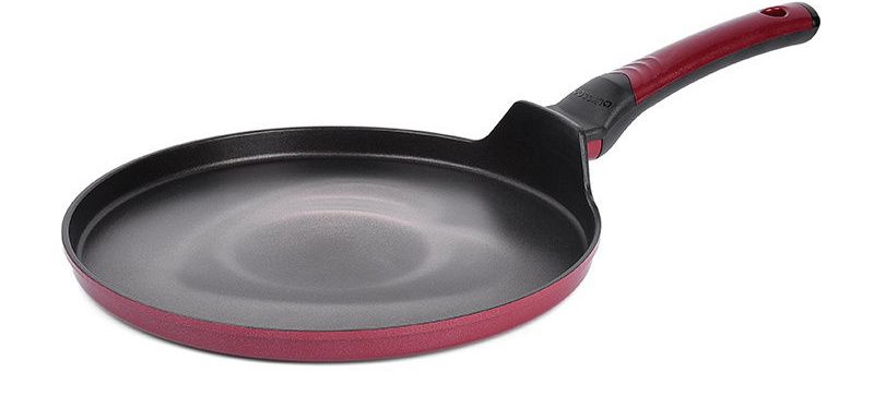 This is a pretty good option for pancake pans for induction cooker, made from environmentally friendly materials. This model can even be used for the oven, which speaks to the universality of the product. The diameter of the pan is 32 cm, the bottom thickness is 6 mm. This model has an induction bottom, made of cast aluminum. It can be washed in the dishwasher.