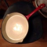 For cooking hot sauces you should definitely have a small cast-iron in the kitchen. stew-pan. The cookware is distinguished by thick walls (about 7 mm) and a spout in the structure. The weight of such a frying pan, despite its modest size, is 1 kilogram. During cooking, the sauce does not burn due to the fact that the heat is evenly distributed.