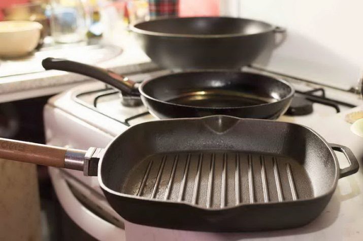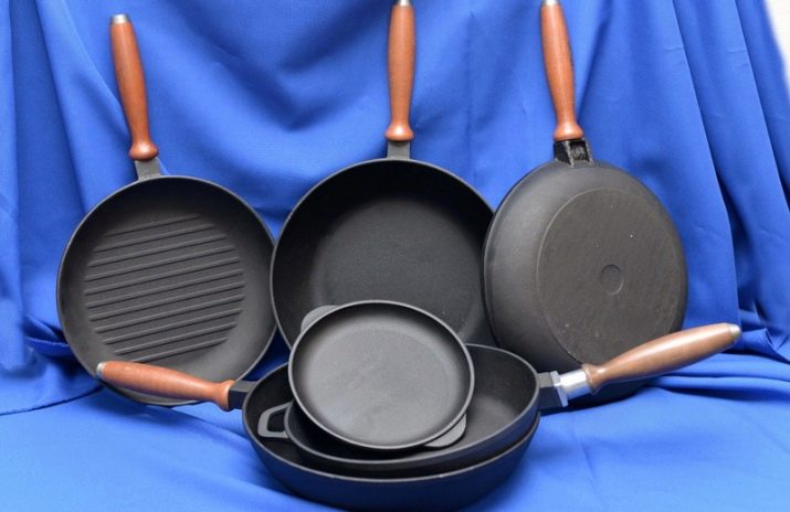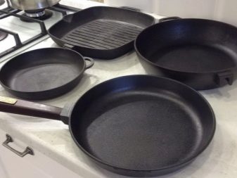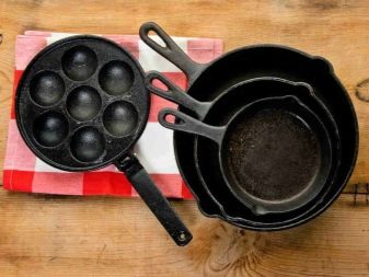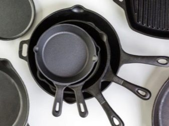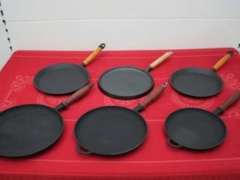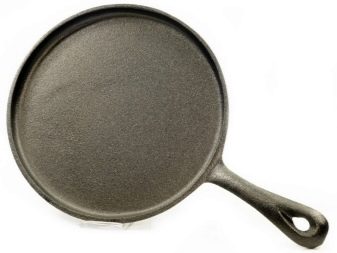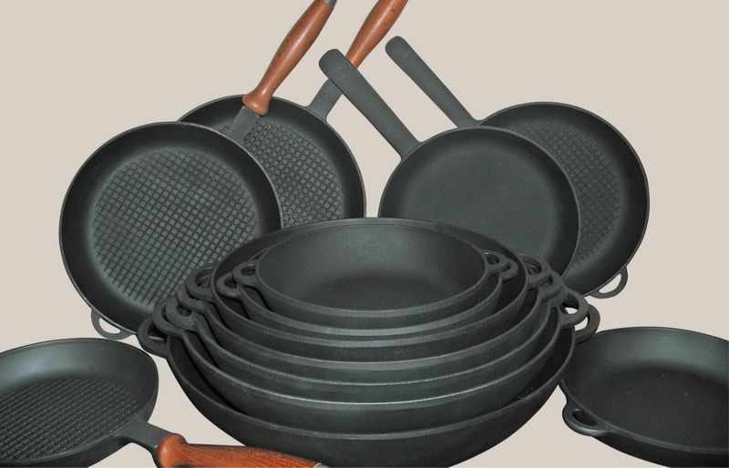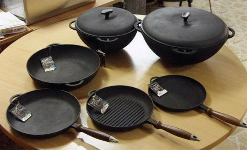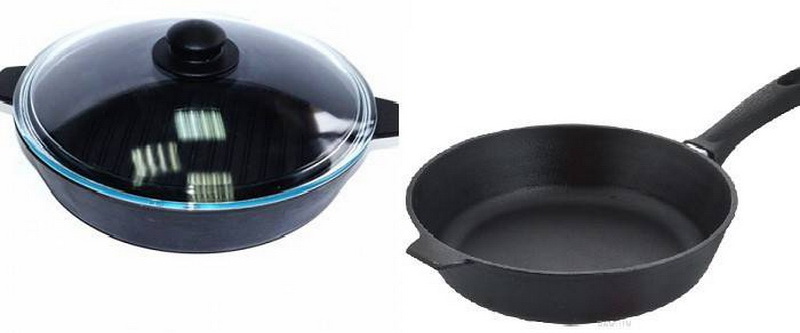 Cast iron frying pans are supplied to the market in a large assortment. There are cast deep and flat, used exclusively for frying pancakes. In such a dish the dish turns out amazingly tasty and is well baked without burning.