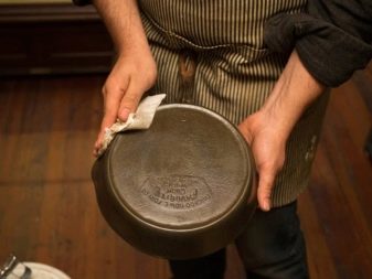 To serve the pan for a long time, need to properly care for her. Creating a protective oil layer is necessary, otherwise rust will appear on the dishes.