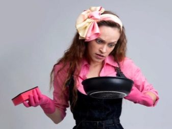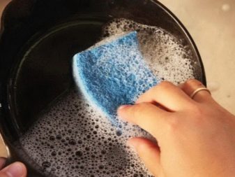 It is enough to immerse the dishes for some time in hot water and apply a soap solution. The use of strong chemicals, and especially with large abrasive particles, is strictly prohibited. A simple sponge remarkably removes the remnants of softened food. Sometimes they take for cleaning salt or soda.