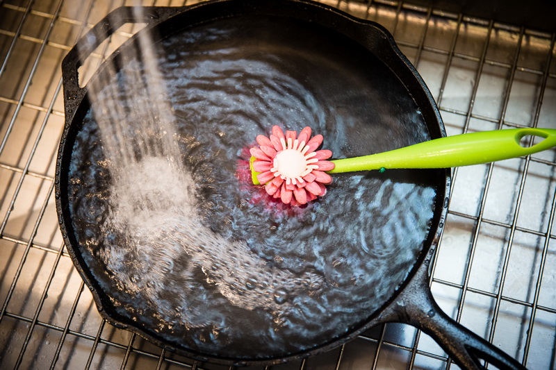 Regular prophylaxis is the first thing that a caring mistress should pay attention to. After cooking, the pan will need to be thoroughly cleaned of food residues. Cast iron is known for the fact that food gets into its pores when exposed to temperature, as a result there is a smell that you need to be able to properly dispose of.