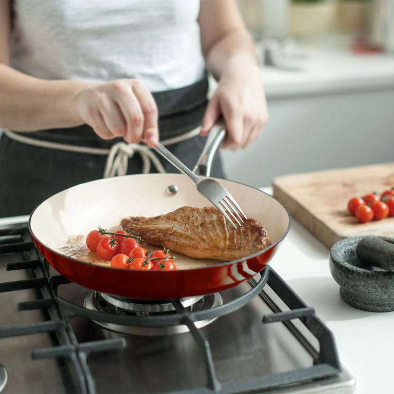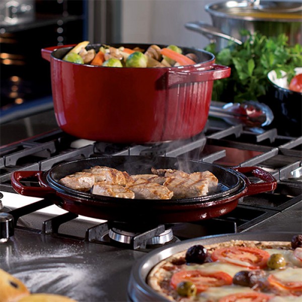 Non-stick coating today is successfully applied to cast iron products. Although these pans have many advantages, they are very demanding on the cutlery that comes into contact with their surface. Fat and burnt foods can be easily cleaned by simply filling the tank with boiling water. Smells are not absorbed by the dishes.