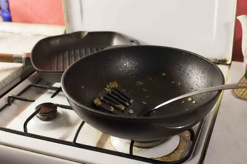After the dirt is removed, the dishes will need to be ignited, greased and left to cool. The protective layer is formed by itself. The longer you use the pan, the thicker the natural non-stick coating forms on it. Most housewives do not know whether to remove it.
