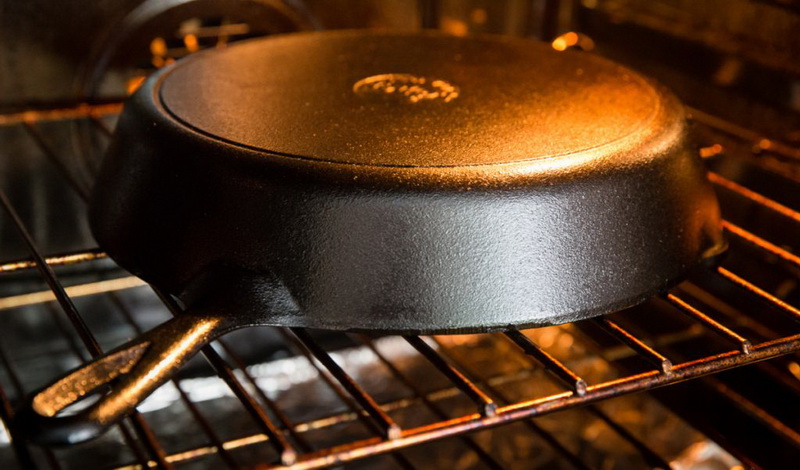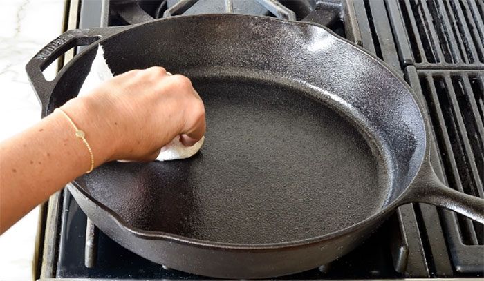 The container is removed from the heat and immersed in water, then heated again.When it is completely dry, it is lubricated with oil, pour a layer of salt into one centimeter and heat it again. Before you put the container in the closet, you just need to wipe it with a paper towel.