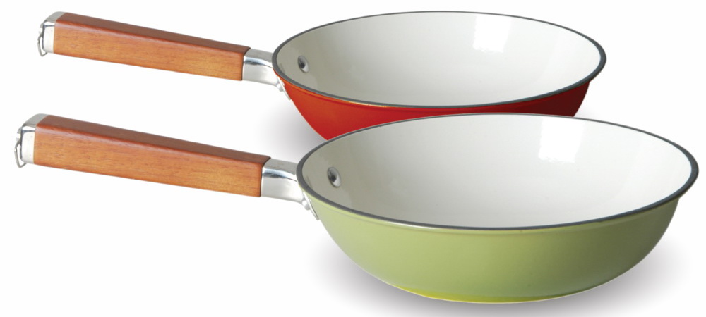 - "Kelli KL-0131-28." Wok with thin walls. You can even use it for cooking soups. The diameter of the pan is 280 mm, it has an enamel coating on both sides. Inside the food heats up quickly, after cooking, its remains can simply be washed off the surface. The manufacturer thought out the shape and design of the handle. Its surface fits perfectly into the hand and does not slip. The cost of the product starts from 1,800 rubles.