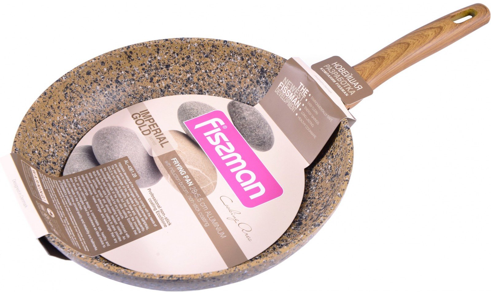 This stone-coated Fissman pan has a heavy weight, so if it seems light to you, it is most likely an aluminum model with a coating that simulates a stone. Such models are not environmentally friendly and safe.