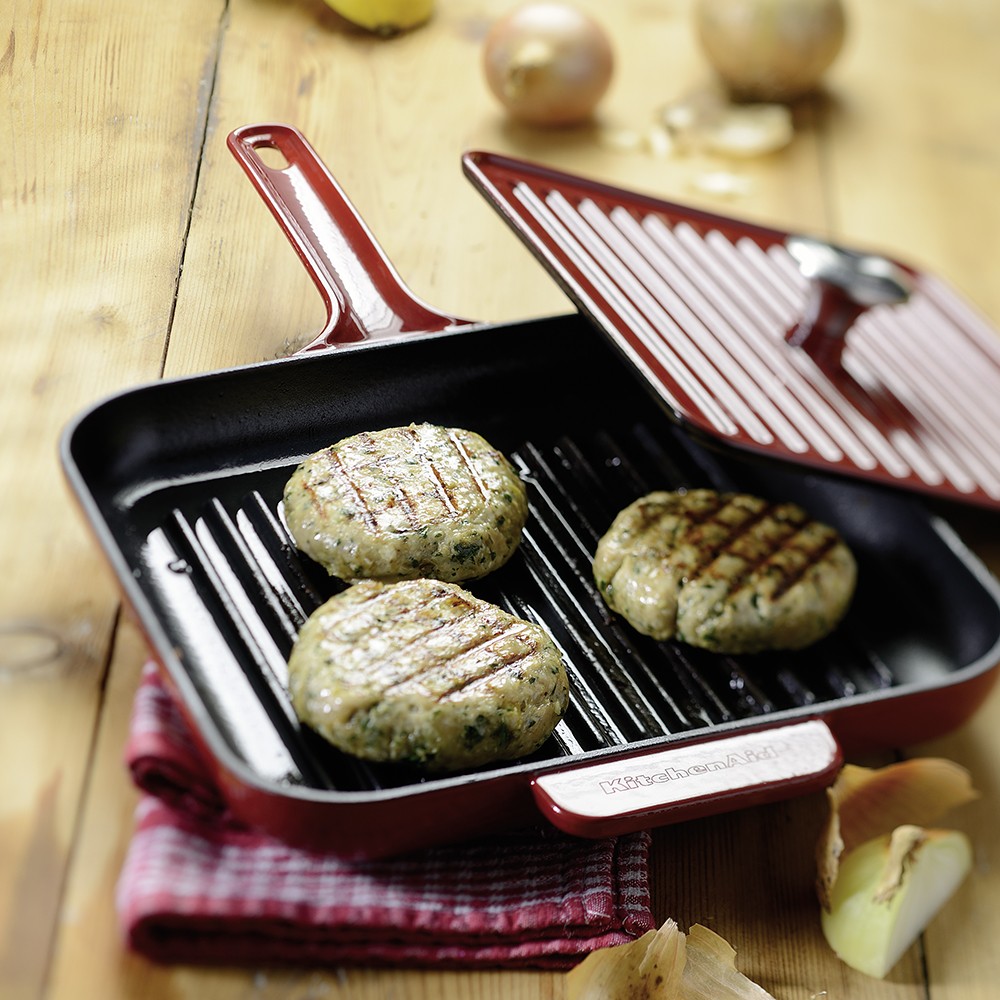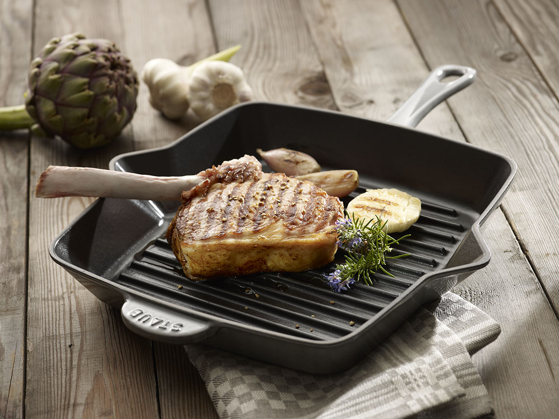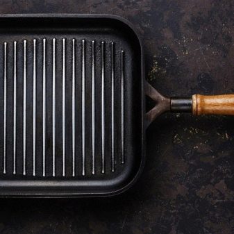 The price of a cast-iron grill pan is rather high, it fluctuates around 4,400 rubles. However, it is worth considering that for the money spent you will get the dishes for a lifetime, while the products cooked on it will be no worse than in expensive restaurants. It is worth noting that it is best to buy a model with the presence of a cover press that will not only improve the taste of the products, but also protect the furniture from splashes.