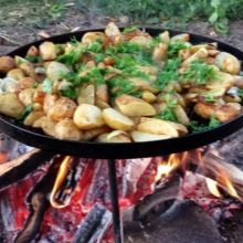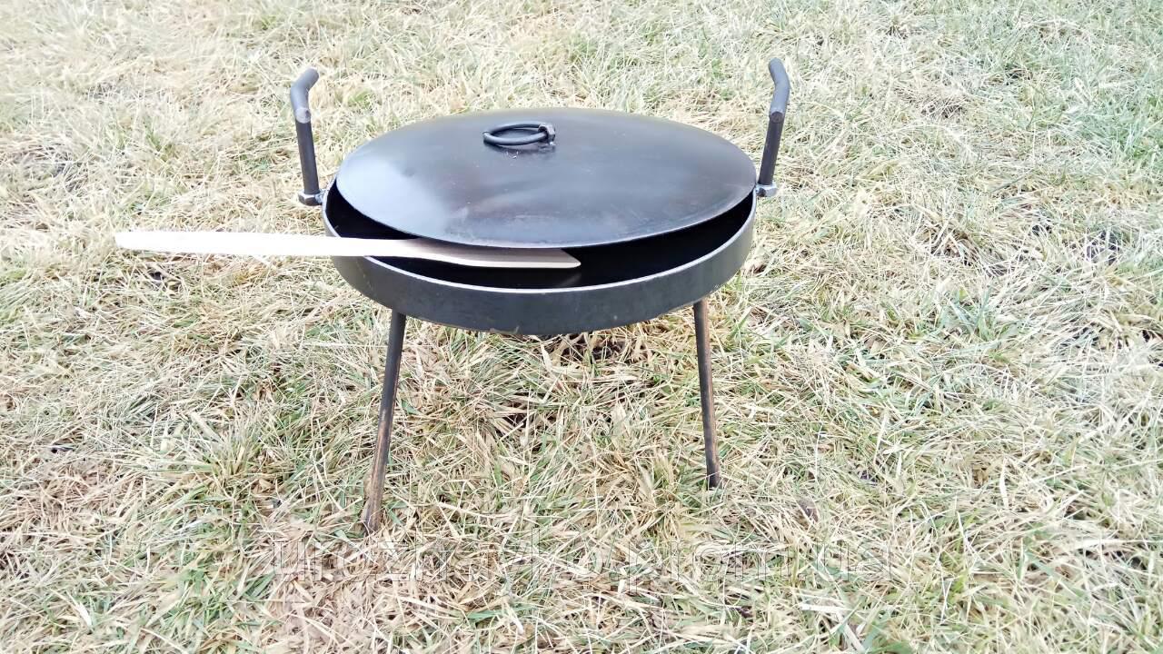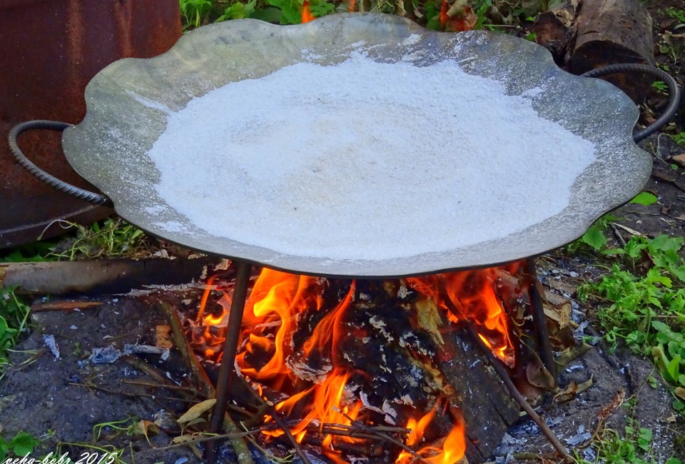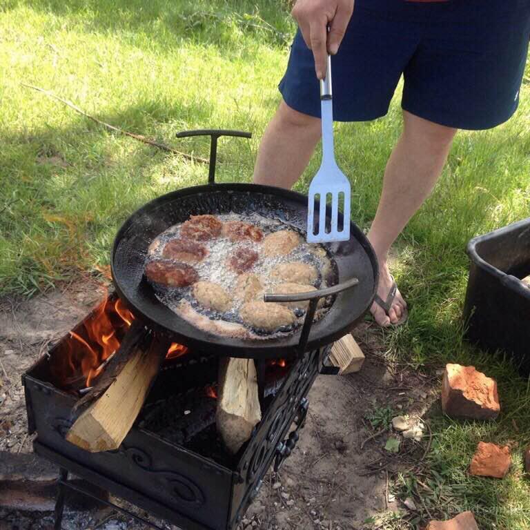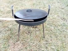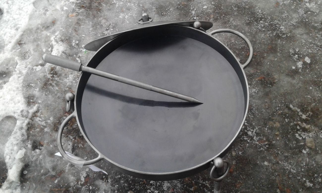 In order to use the pan from the harrow, it could be used in field conditions, four lengths of a pipe at least 10 cm long are welded to its bottom. The distance between them should be equal, which will ensure efficient distribution of loads. Supporting legs will be inserted into these tubes, the height of which should allow placing the pan over the fire. At the final stage of the manufacture of the frying pan from the harrow, a thorough cleaning of the inner side surface and its subsequent polishing is carried out.