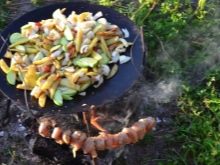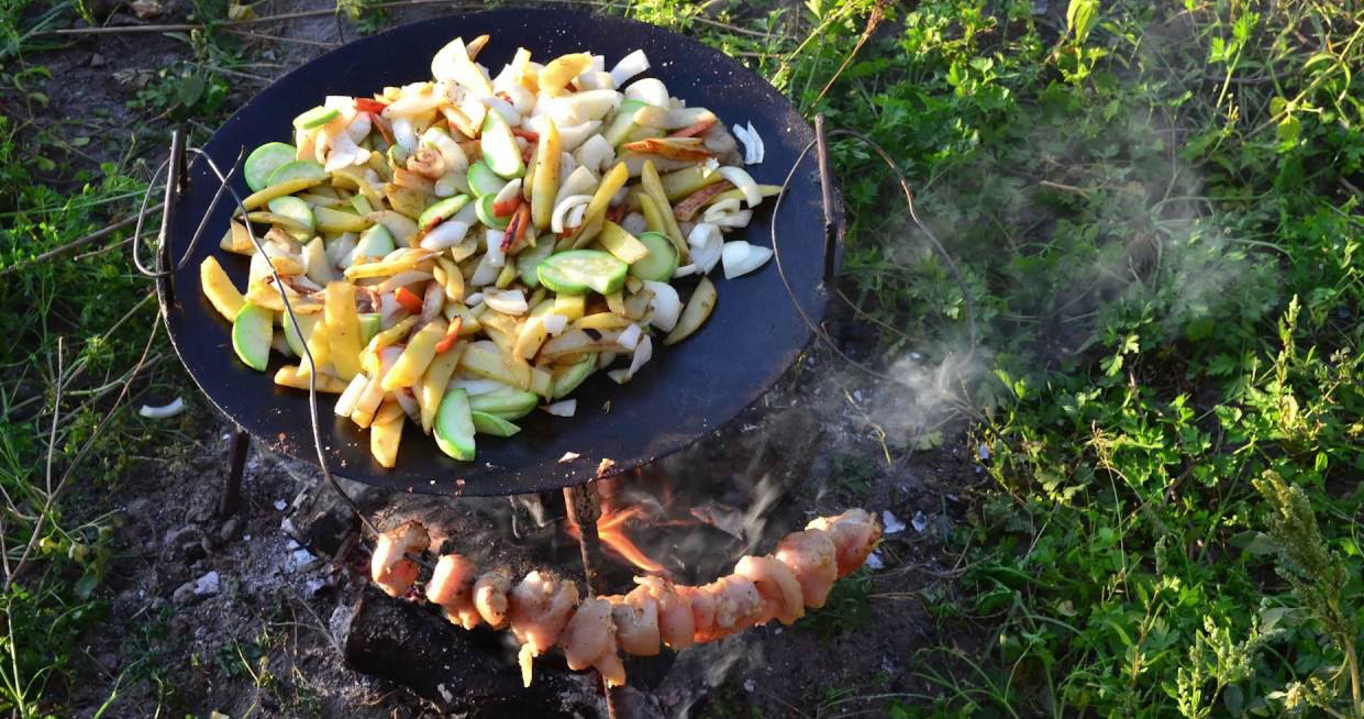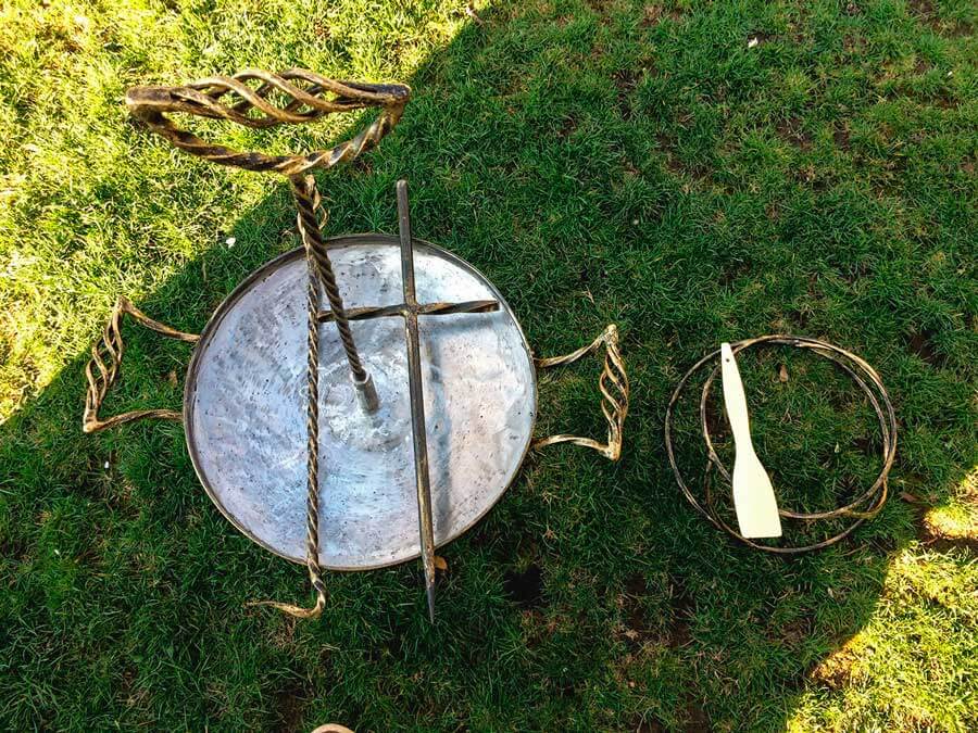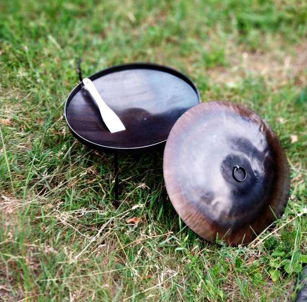 A wok made from a harrow is ideal for use in field conditions. It can be installed on improvised bonfire supports, as well as on a special tripod used to hold a round cauldron. With an independent production of a frying pan from a harrow, it is possible to equip additional fasteners, which make it possible to attach supporting legs to it, which significantly expands its functionality and makes it universal.