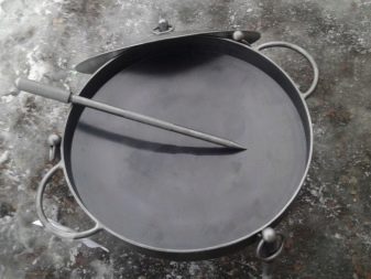To ensure ease of use of the pan it is worth welding U-shaped handles to the edge of its edge. They can be made from reinforcement or iron rod having a small diameter.