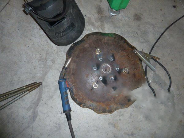 Harrow mounting holes, whose diameter ranges from 15-20 mm, are located in the center of the workpiece, which prevents its use as a frying pan. Their elimination with the help of a metal plate can be done in two ways. In the first case, the 2 parts of the plate are welded on both sides of the harrow so that the holes are completely blocked. Procuring is performed around the perimeter of the plate elements, which eliminates the occurrence of a leak.