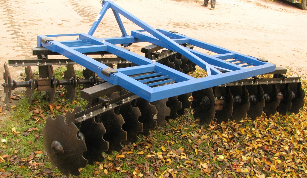Harrow - an agricultural device with which plowing is done. It has a round convex-concave shape. Some harrow species have a cutting edge containing wide teeth. It is made of durable steel with a thickness of up to 1.5 cm. In the center of the harrow, mounting holes are placed, thanks to which it is held in the appropriate position on the driving unit.