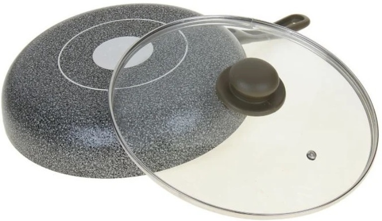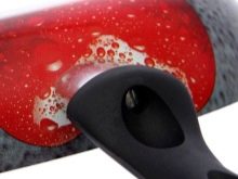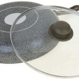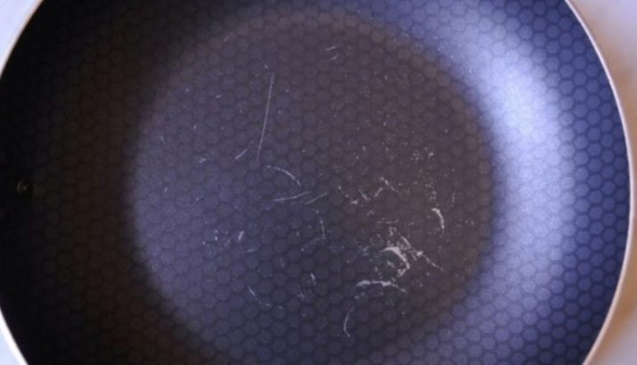 We turn to the minuses. First of all, the bottom and the walls are too thin, because of which the dishes do not withstand temperature changes, that is, they cannot be heated quickly. The inner coating deteriorates over time, scratches appear on it, even if you use only silicone and wooden paddles. Pans serve a maximum of a year, and then subject to a huge number of rules of application.