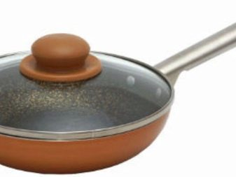 This is a premium line of beautiful sand-colored pans. The inner coating of granite color has five layers, the outer - four. The ergonomic metal handle is attached to the body with rivets. Dishes are presented in diameters of 20-26 centimeters with a lid and without. The glass lid is equipped with a steam outlet, what allows to keep even better the saturated taste of dishes and advantage of products.