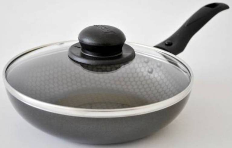 The pans are easy to clean and can be washed in the dishwasher.. Induction bottom ensures compatibility with any type of cooking surfaces. The five-layer inner coating prevents food from sticking to the bottom and allows you to use less oil when cooking.