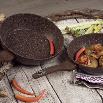 Models with lids are especially to the liking of customers, as they can not only fry, but also stew dishes, which means they are more functional. Marked silicone edge, thanks to which the lid is better fitted to the body. Many are pleased with the low price of the models, and some even bought them almost for nothing thanks to the promotion in the store. Attractive appearance and beautiful color pans is not the last place when choosing. The dishes look stylish and look great in any kitchen interior.