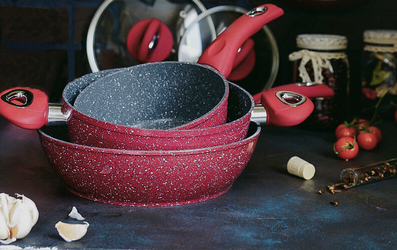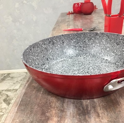 The non-stick coating has 5 layers, the food does not stick to the bottom and is more saturated. Pans are great for any type of plate.