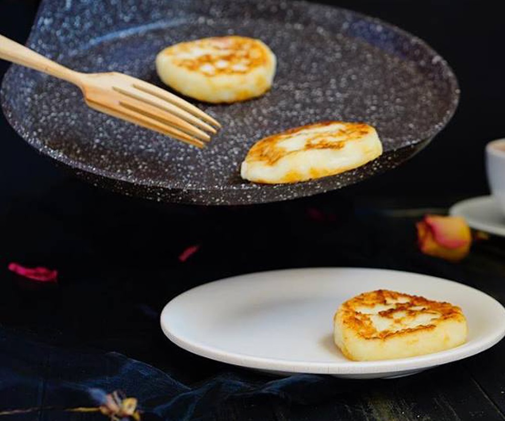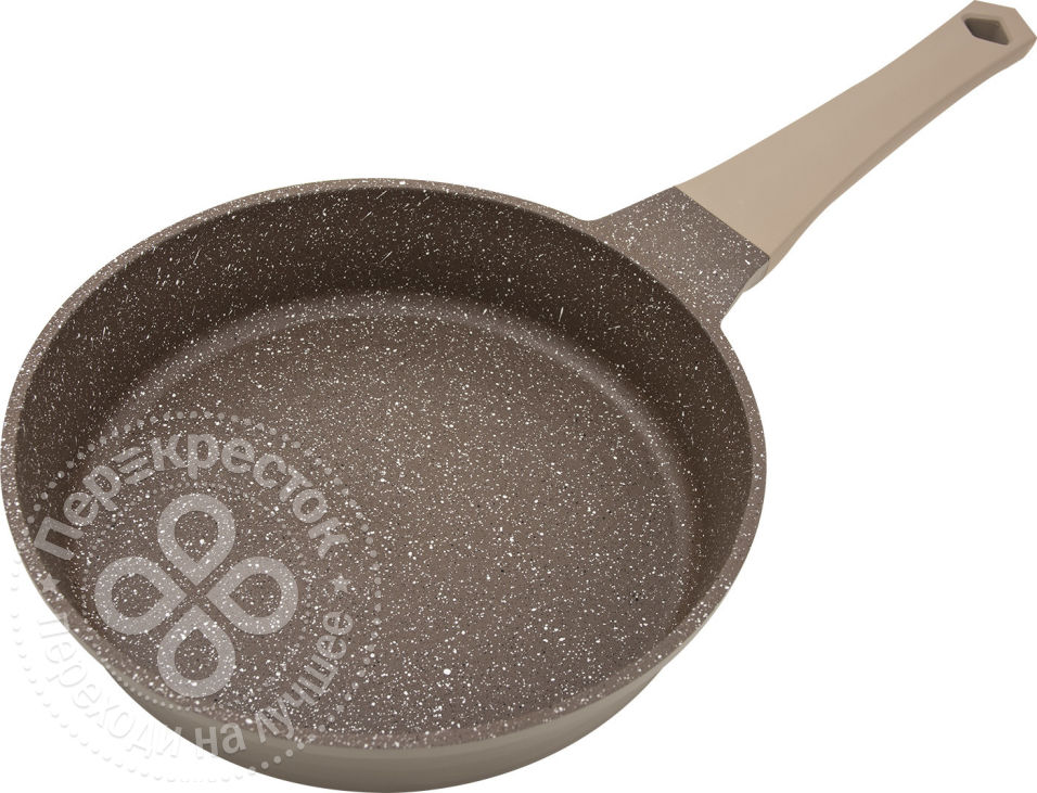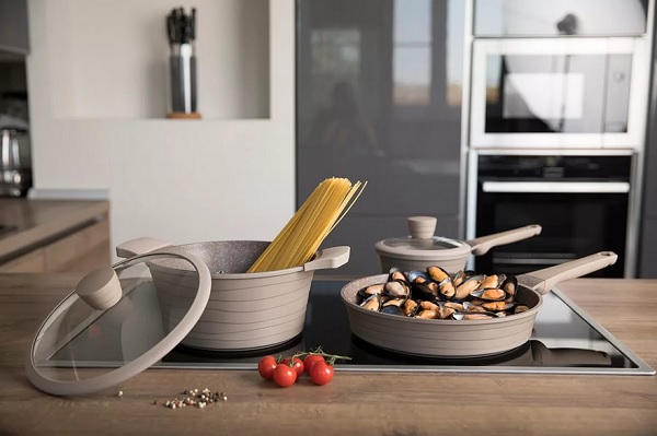 A series of deep sand-colored pans will be the perfect choice for a classic-style kitchen. In dishes with high walls with a diameter of 24 and 26 cm, you can stew vegetables and meat, cook stews, roasts and many other dishes. Models are made of cast aluminum, which has a high strength. The wall thickness is 3 mm, and the bottom - 5 mm, which ensures uniform heating of the food and prevents sticking.