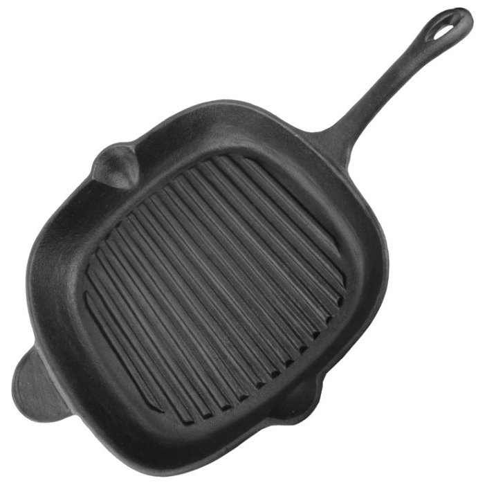 - Grill pan. The ideal device for cooking steaks, fish and vegetables. A ribbed bottom allows you to cook a juicy, well-done steak with an appetizing crust with a small amount of butter.