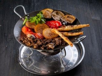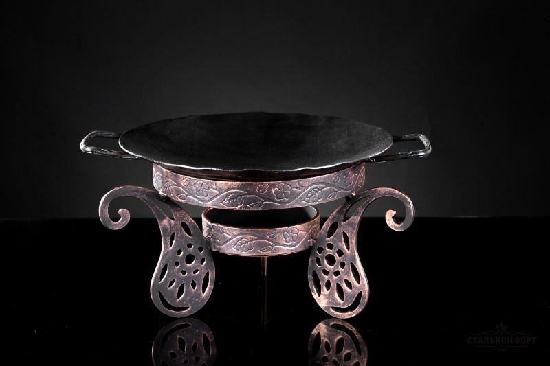 Universal cookware is a cast-iron cauldron (of various volumes) with a lid made in the form of saj. For lovers of aesthetics or just beautiful tableware, there are forged options for saj, supplemented with various decorative elements.