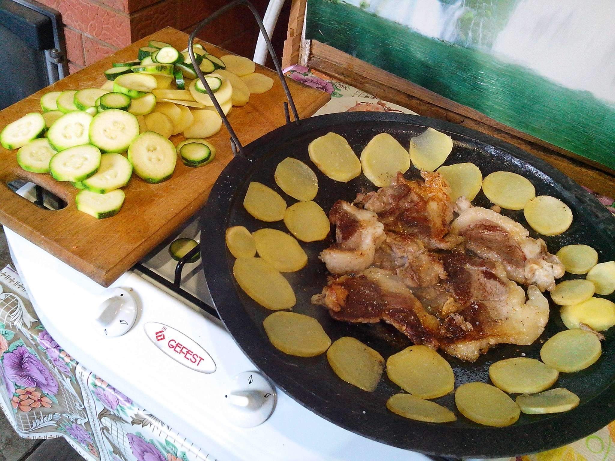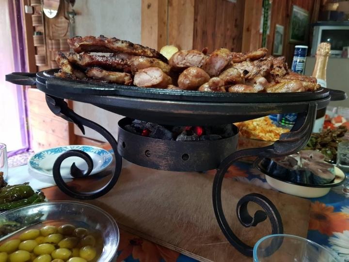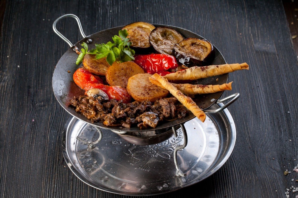 Saj - a special cast-iron frying pan with a sloping spherical bottom heated on coals. This ancient technology of processing products has not only survived to this day, but also occupies a worthy place throughout the world. The central part of sajah is usually used for roasting meat, while the peripheral part is used for roasting vegetables, which probably accounts for its spherical surface.