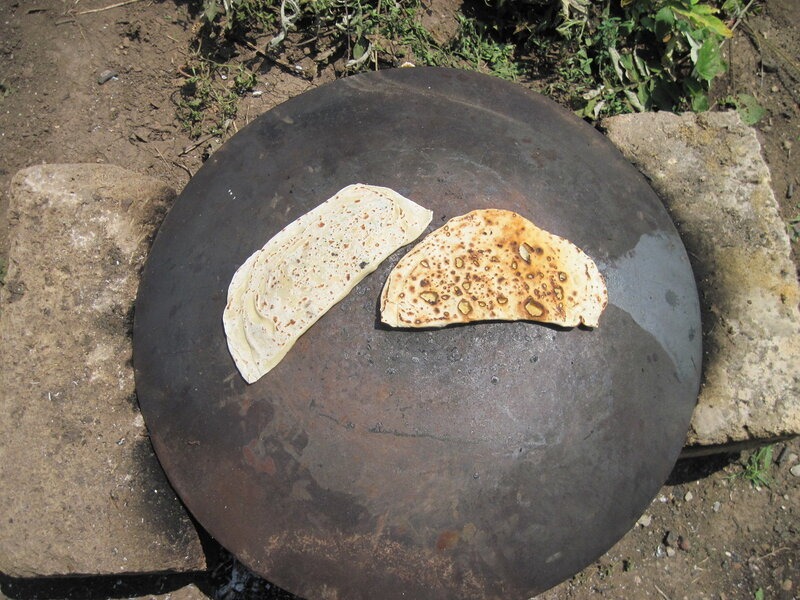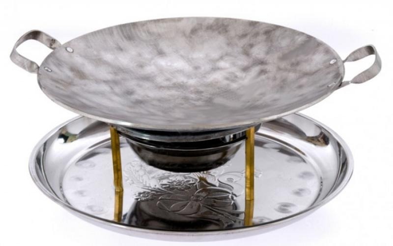 Steel, nickel and chrome saji do not rust, and therefore their preparation for use is easier than that of cast iron cookware. The pan is thoroughly washed, dried, and then it is calcined in the fire with the addition of a small amount of oil and a handful of salt. Calcify for about 20 minutes, until the first smoke. Then the saj is washed, dried and dried.