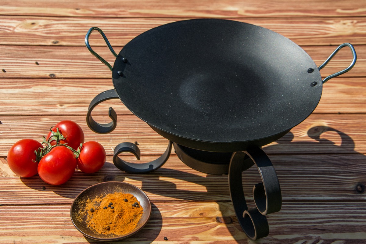 The size of the saj frying pans is different, and they are usually chosen according to the diameter, guided by the amount of food needed for cooking.