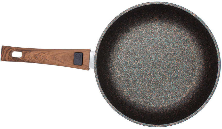 Granite (marble) coating implies the use of the most popular Teflon, but with the addition of stone chips. Pans with a similar coating stand out uniform distribution of heat throughout the bottom areaBecause of this, the dish will be quite warm for a long time.
