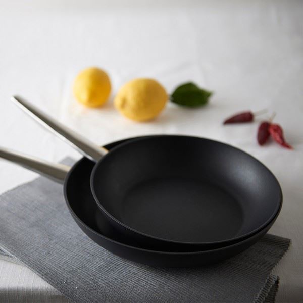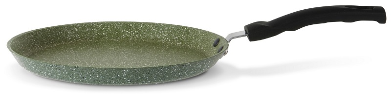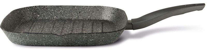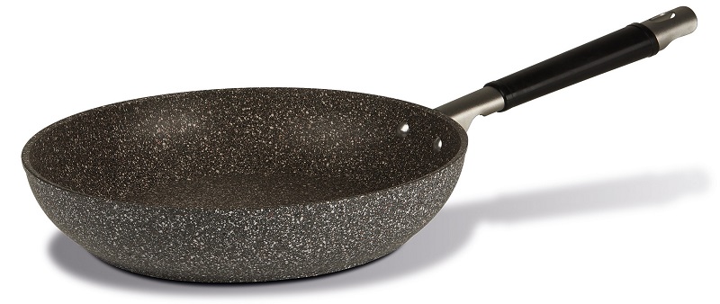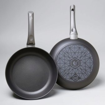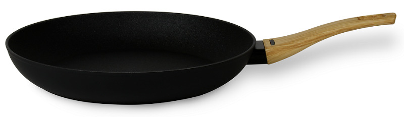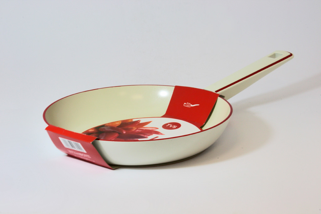 One of the most unusual frying pans. Firstly, it has a 5-layer coating, which already distinguishes it from others. Secondly, it is a plant-based coating: it contains vegetable glycerin, which has anti-burn properties. On the handle is an indicator that turns green when it heats up. The diameter is from 20 to 30 cm. The price on the official TVS website is 1790 rubles, which is not too much.