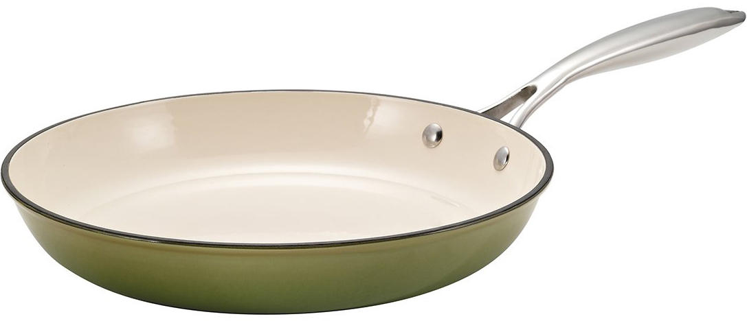 One more safe material which interferes with oxidation of metal of a frying pan. This allows you to cook and store food in such a pan. Among the "minuses" of enamel coating is its fragility and instability. In the event of chips, scratches on the surface of the dish, it loses its inherent properties and requires replacement. This is due to the need to carefully approach the type of spatula, as well as careful washing.