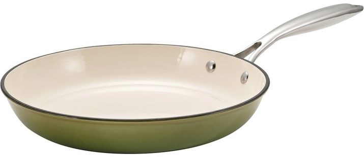 Another modern popular coverage. Typically, aluminum and cast iron frying pans have a ceramic surface. The advantage of a ceramic surface is its ability to warm up quickly and evenly. Unlike Teflon, this coating can heat up to + 450 ° С, without emitting carcinogens.