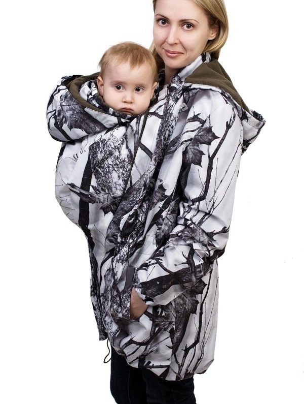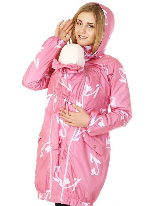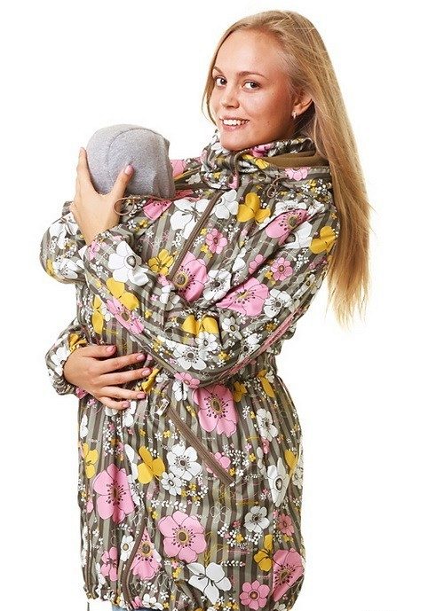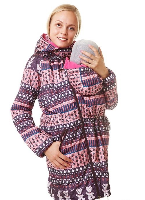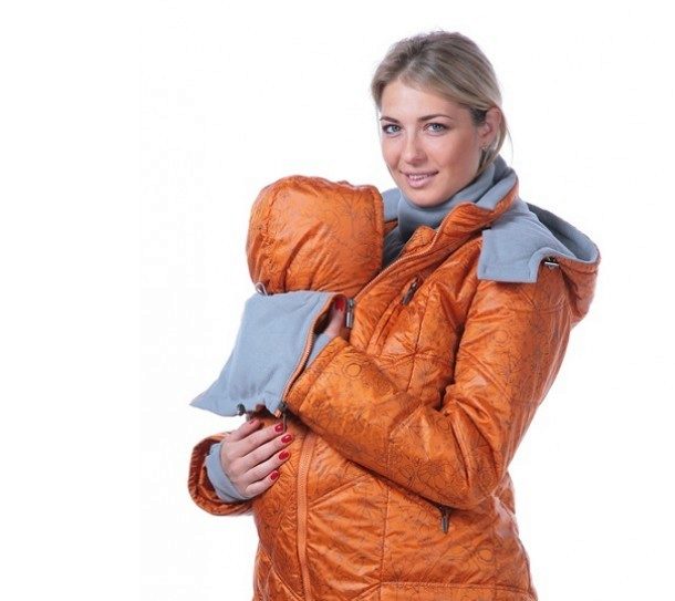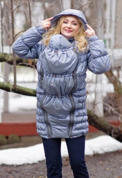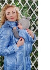 Mostly demi-season slingokurtki designed for temperatures from -7 to +15. Many slingokurtki are transformers, in 2in1 jackets you can remove the slingin and wear the product without a child, 3in1 jackets in addition to the insert for the child also have a tab for a pregnant belly, and in 4v1 jackets you can wear your baby not only in front, but also on the back.