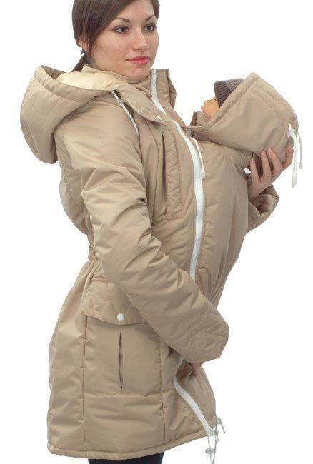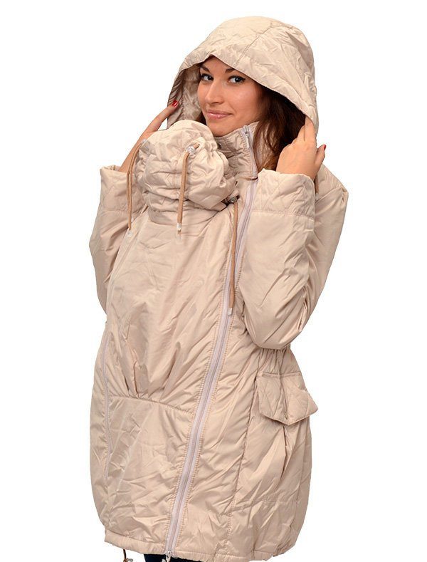Slingokurtka - a great option for a pregnant woman, the last trimester of which falls in the fall or spring. In the slingokurtke, the expectant mother looks attractive and elegant even in the last month of pregnancy. And it’s very convenient to be with a baby in one slingokurtka, firstly, he doesn’t need to buy a separate outerwear, and secondly it’s painful to put it on before each exit from home. Slingokurtka need mothers whose children can already sit in a sling, and that kids are not younger than 3-4 months. It is useful and older children at the age of about a year. Thus, a demi-season baby jacket is purchased for two or even three seasons.