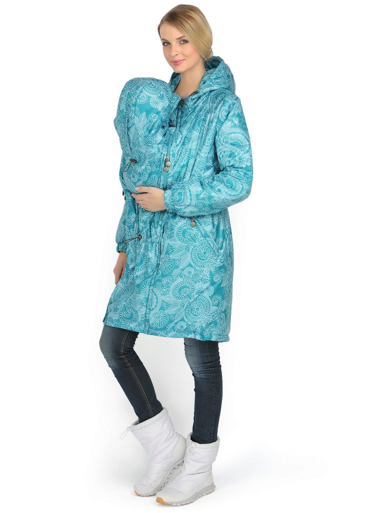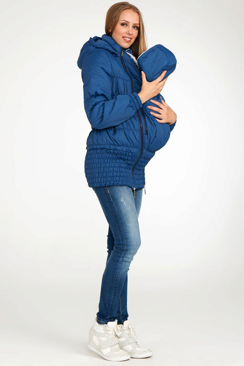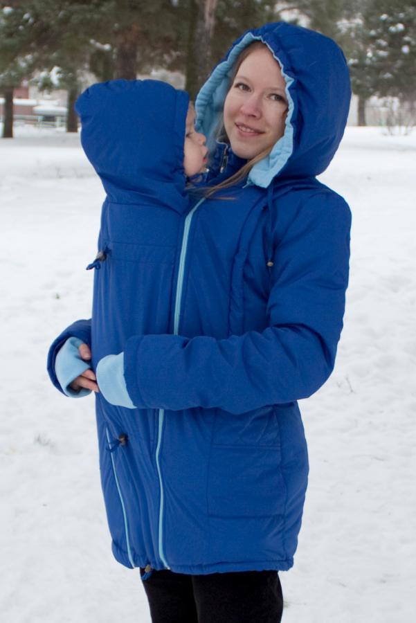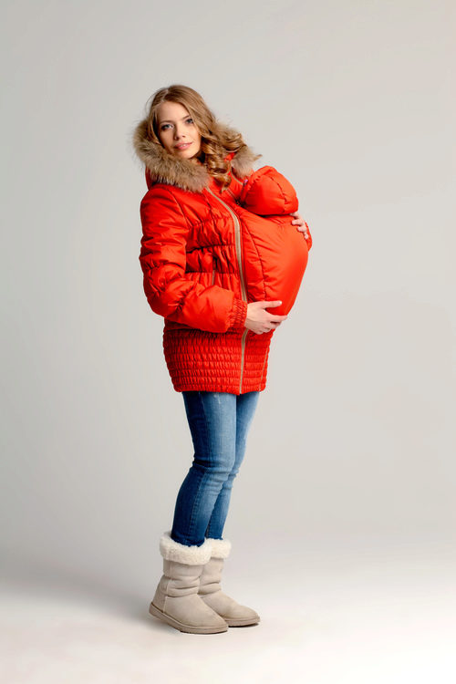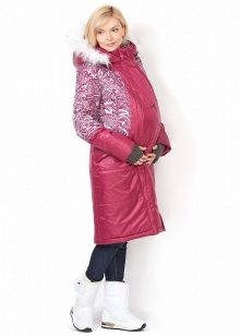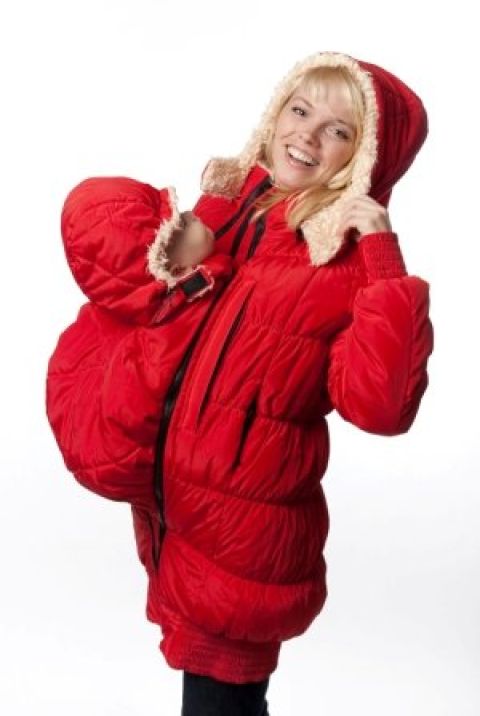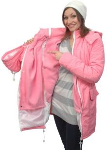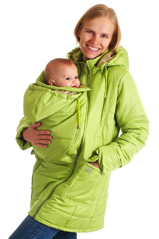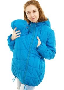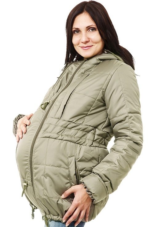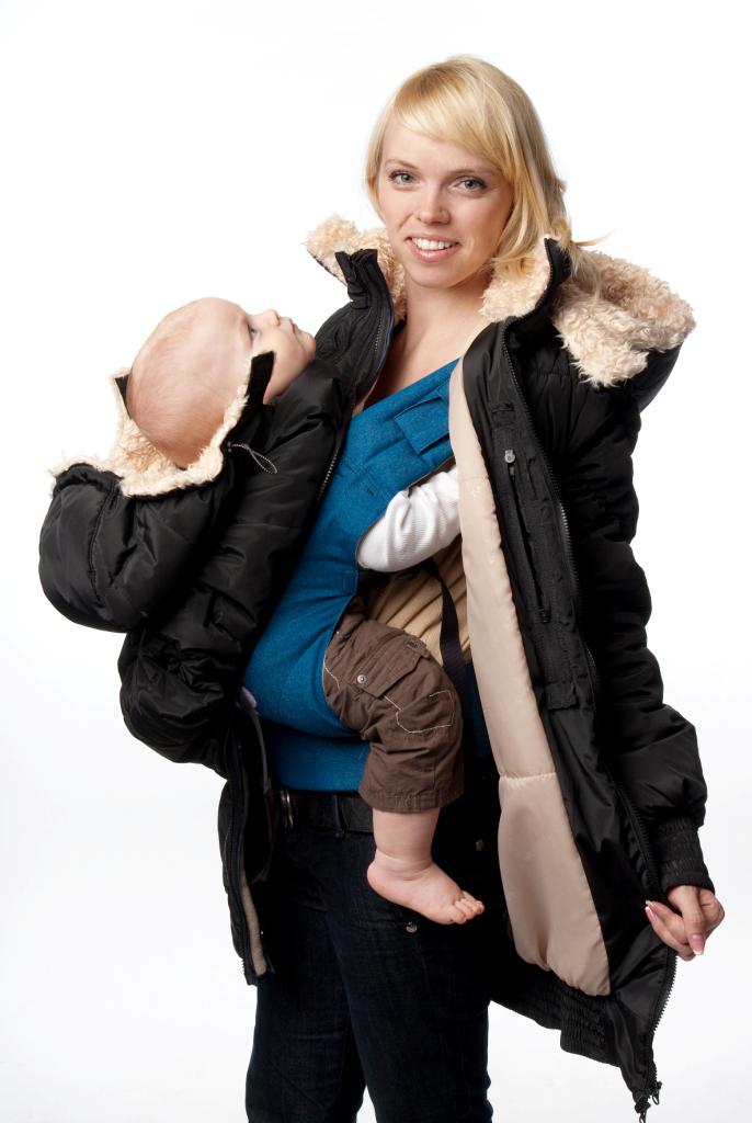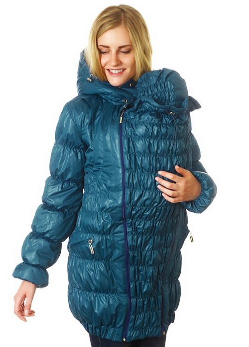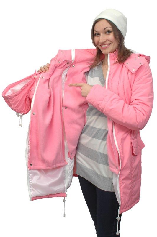 Slingokurtki differ from conventional models in the presence of an additional insert, which is located in front. Most often, it is fastened on both sides with a zipper, thus forming additional space for convenient placement of the child. The insert can be adjusted in width and height, due to which neither you nor your baby will have to adjust to the standard dimensions of the jacket.
