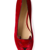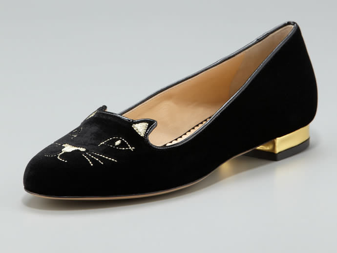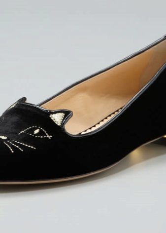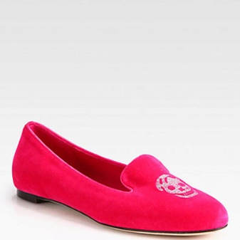 Graceful velvety shoes with cats on their socks are probably familiar to young girls who follow fashion trends. Charlotte Olimpia. Prada chose for their shoes in this style design with sequins for reptiles, as well as with flowers and gold. Designers Valentino pleased the fans with pink sleepers decorated with black lace or crystals. Christian louboutin launched a line of leather and satin slippers with spikes.