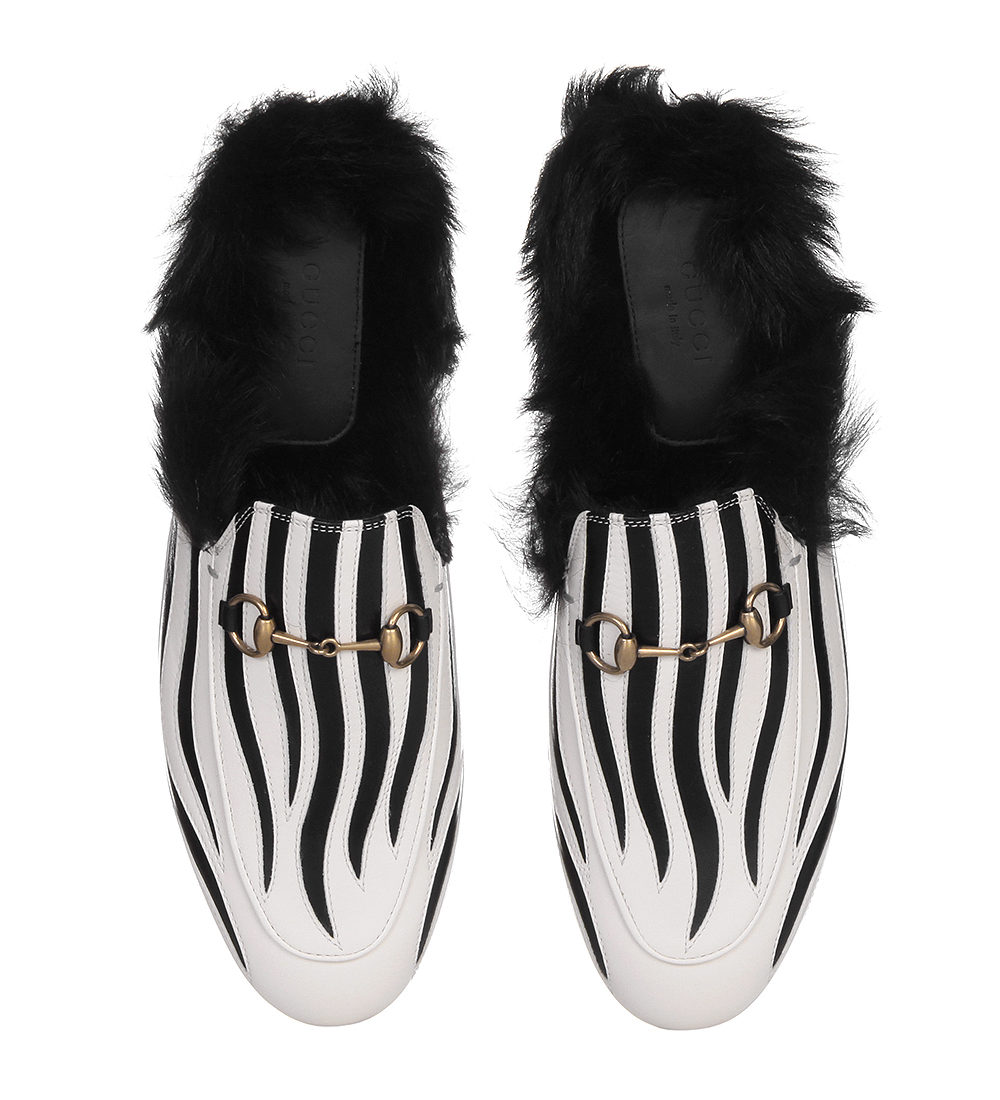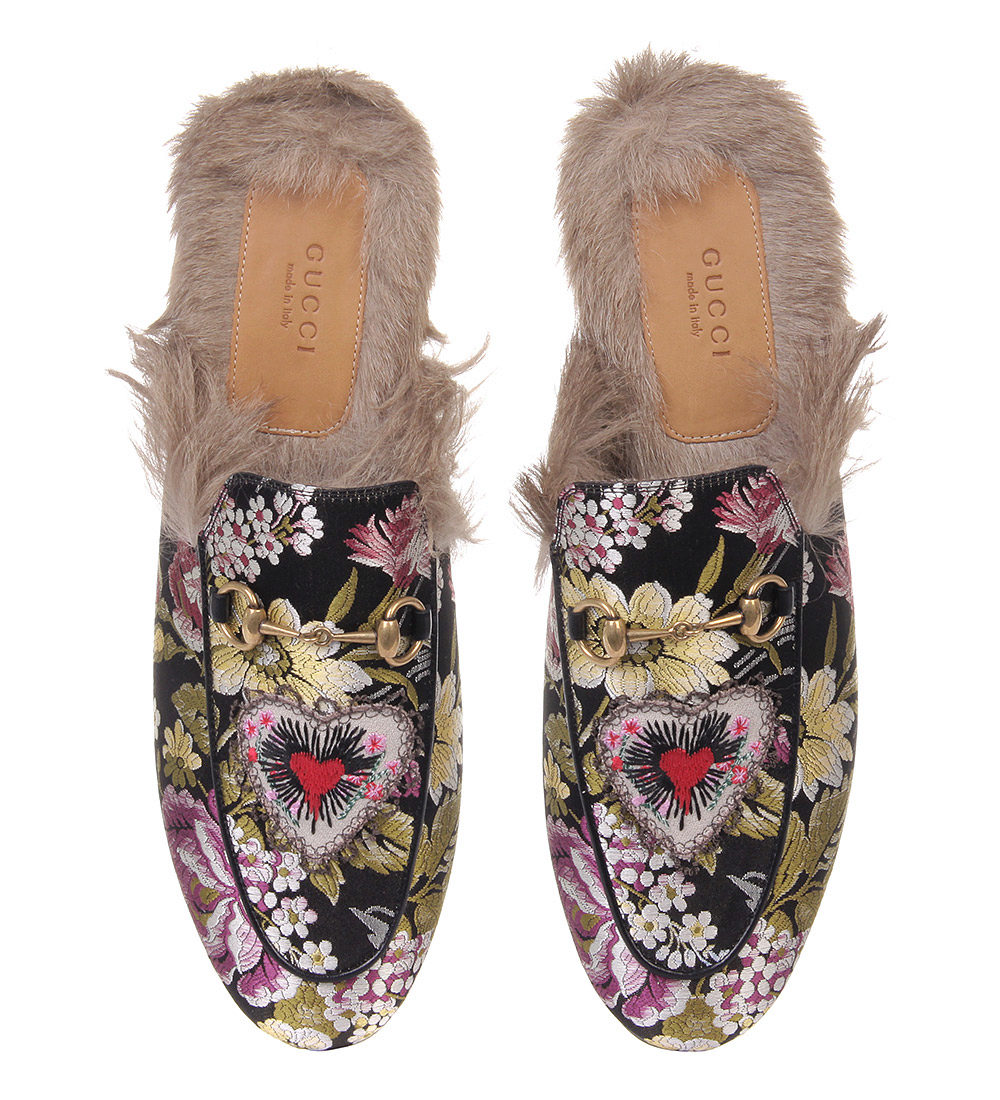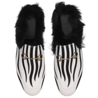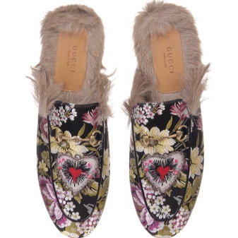 The Gucci brand at one time pleased their fans with leather sleepers on fur, they became one of the chips of the fall-winter 2015 collection. Such an unusual finish looked very unexpectedly on leather slippers. It was proposed to wear these winter sleepers to both men and women.