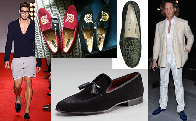 Although the first sleepers were made of velvet, today it is increasingly giving way to other materials. Such models mostly remained only in the men's wardrobe, and then they are squeezed out by more modern, suede "brothers". And yet, classic lovers prefer them, although they are not so easy to find and they are quite expensive.