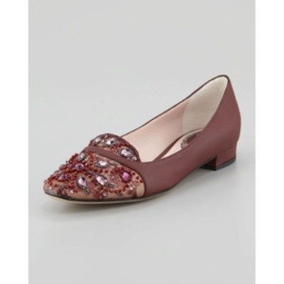 Alexander McQueen presented colored models with branded bead skulls. The brand Miu miu embodied in his collection the trend of the Baroque style - a little frilly luxury of gold and bright colors. Jimmy choo I experimented with calf skin and produced very versatile sleepers that are appropriate for different situations. And models from Vera wang distinguishes ethnic style, in this collection there are even straw shoes. Brian atwood created a truly brutal sleepers - suede with snake skin holography. The brand Renee caovilla He released shoes with lace sock, Swarovski crystals and beads.