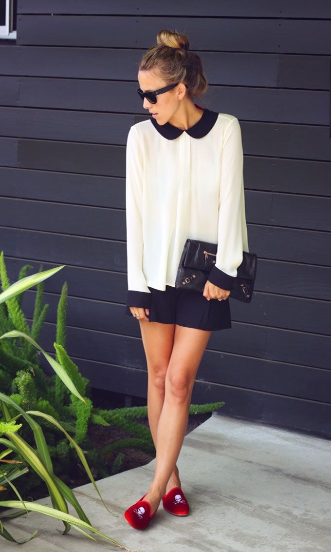 What could be more appropriate in summer than shorts? They can be worn with sleepers of different colors with rhinestones, sequins or embroidery. The same applies to universal denim skirts. On the top you can pick up a simple cotton blouse.
