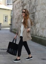 Slip-on looks harmoniously with casual, oversized, streetwear and sportswear., but it is better not to put on slip-ons with clothes of classic cut. For example, with a coat - oversize, leather jacket, raincoat or windbreaker.