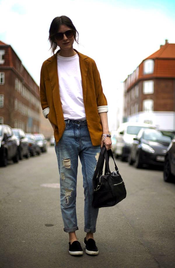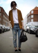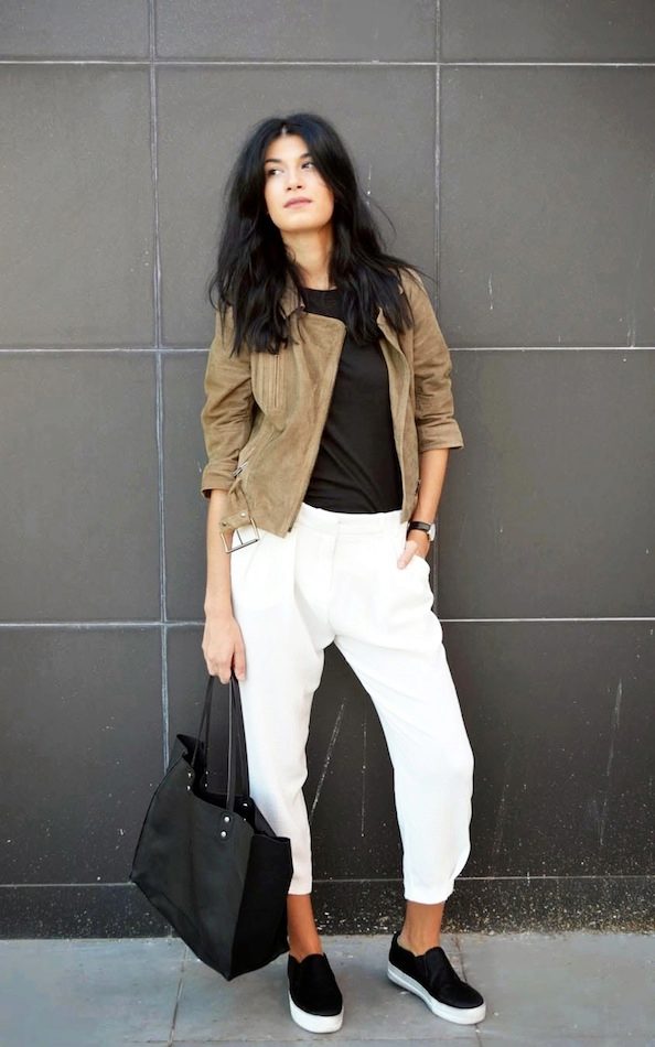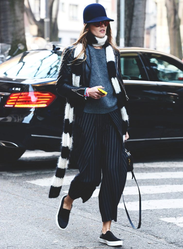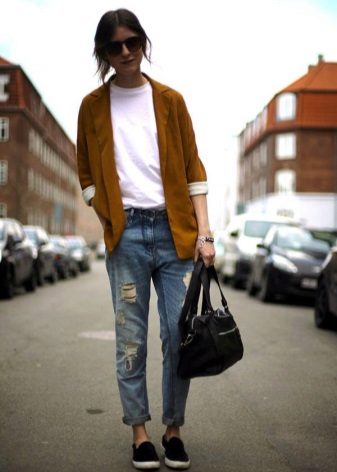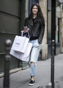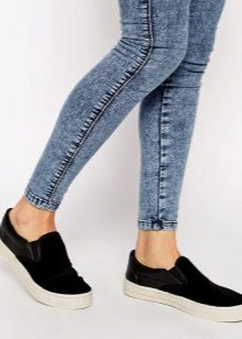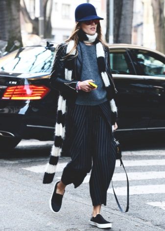 With classic jeans, boyfriend jeans and denim shorts and jumpsuits of any color, slip-ons will make a beautiful sporty look. They will fit narrower and shortened pants.