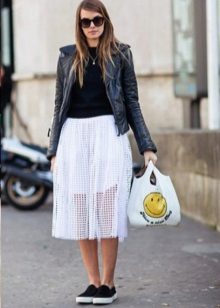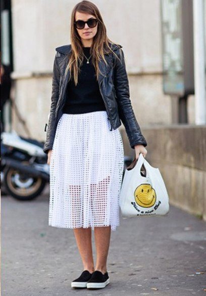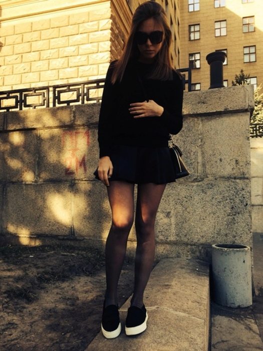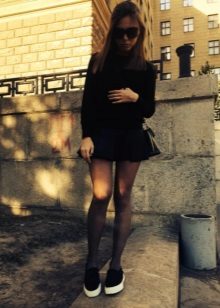 Slip-on sneakers can be successfully combined with different skirts and sporty cut dresses. Solid black models are well suited to colorful dresses and clothes with bright prints.