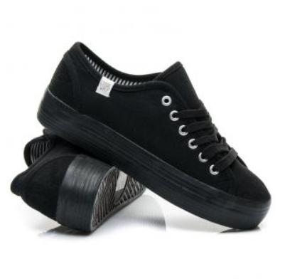 Very stylish black slip-on sneakers with denim jumpsuits. Black is a universal color and they can complete any look without selecting other black accessories.