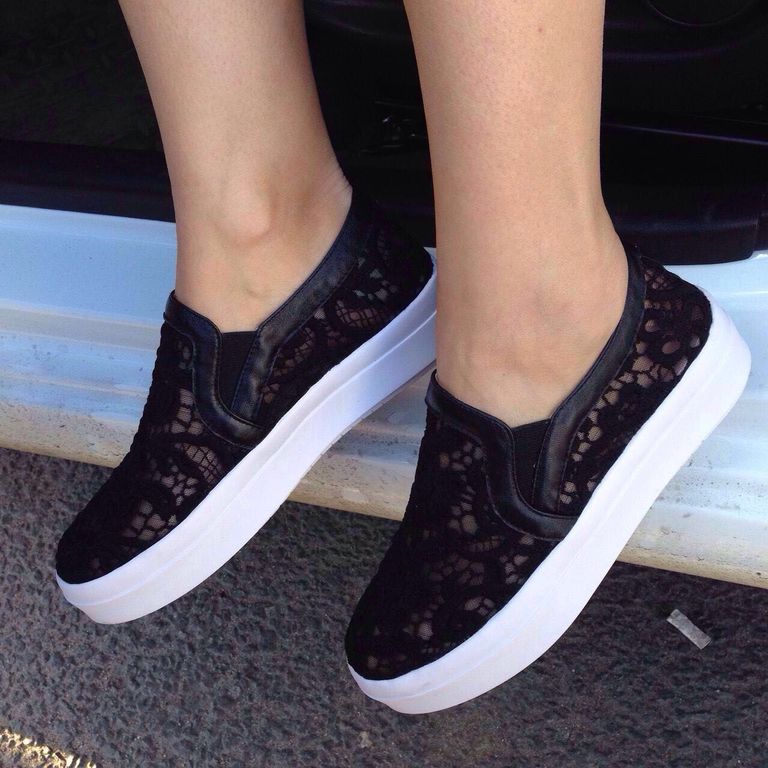 It is difficult to imagine a more summer and airy model than lace slipons. Such a model will not leave indifferent fans of urban glamor. Black slip-ons with rhinestones can also not be called everyday models, they can be safely attributed to an elegant look.